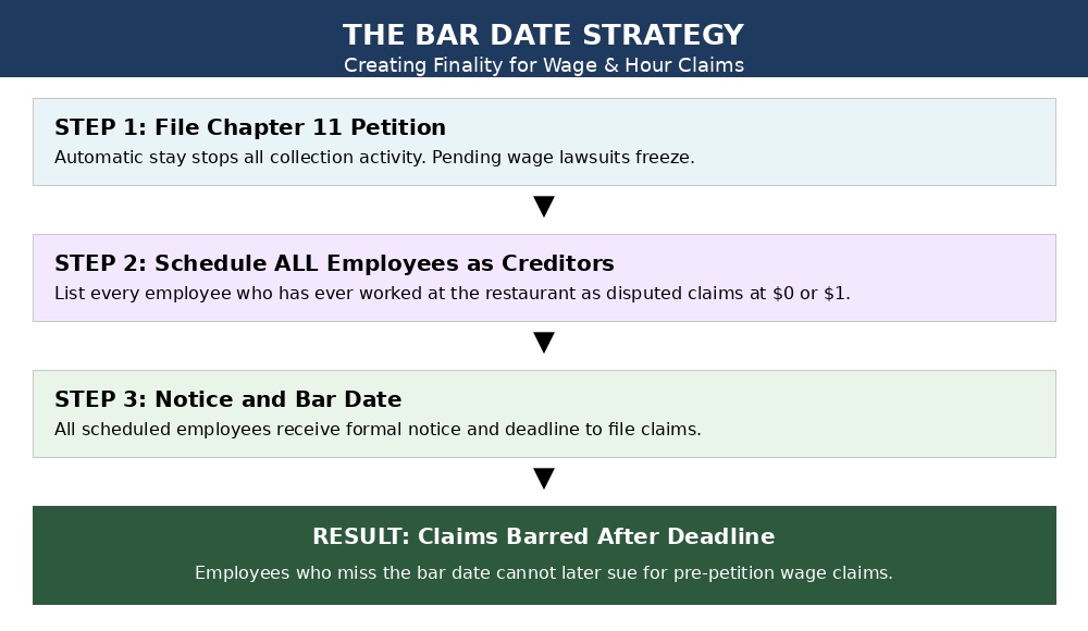 I’ve seen restaurant owners pay six figures to settle wage claims—only to face new lawsuits from other workers months later. It feels like whack-a-mole with your life savings. Chapter 11 changes the game with one powerful tool: the bar date.