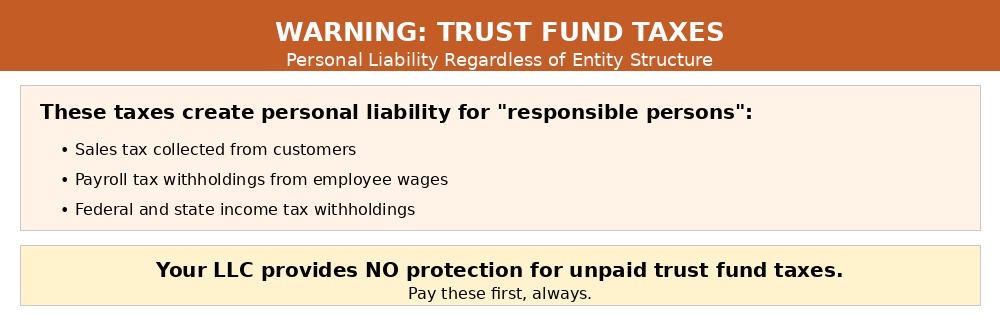This isn’t technically a “corporate formality,” but it’s critical: failing to pay trust fund taxes creates personal liability regardless of your entity structure.