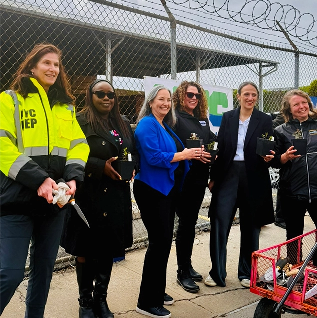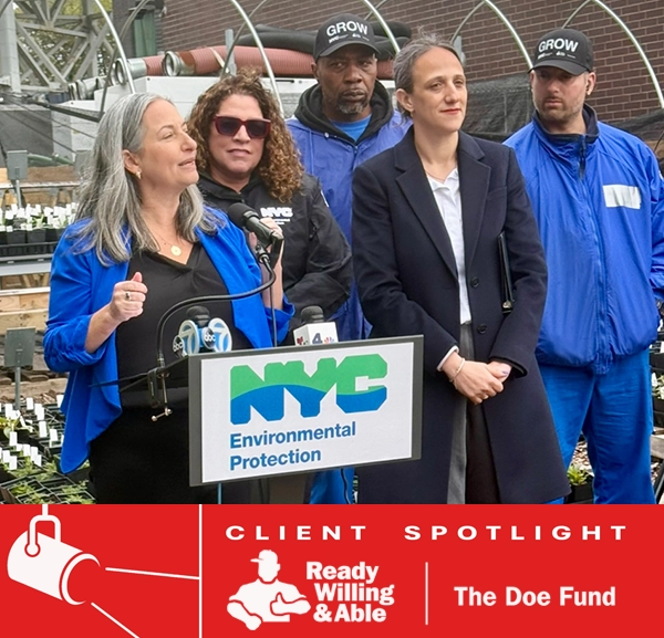 April 22, 2026 – In Celebration of Earth Day, The Doe Fund joined NYC Deputy Mayor for Operations, Julia Kerson and Department of Environmental Protection (DEP) Commissioner, Lisa Garcia to announce a new partnership. As part of this initiative, Doe will provide workforce training to individuals looking to pursue job opportunities with DEP, to maintain neighborhood rain gardens across the city. In so doing, this partnership will maintain a critical career pipeline that will strengthen New York’s climate resiliency while creating meaningful employment opportunities. During the event, the partners also cleaned rain gardens and added new plants.